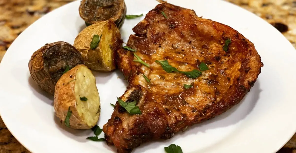 🥔 Make It a One-Basket Meal: Air-Fried Pork Chops with Rosemary Potatoes