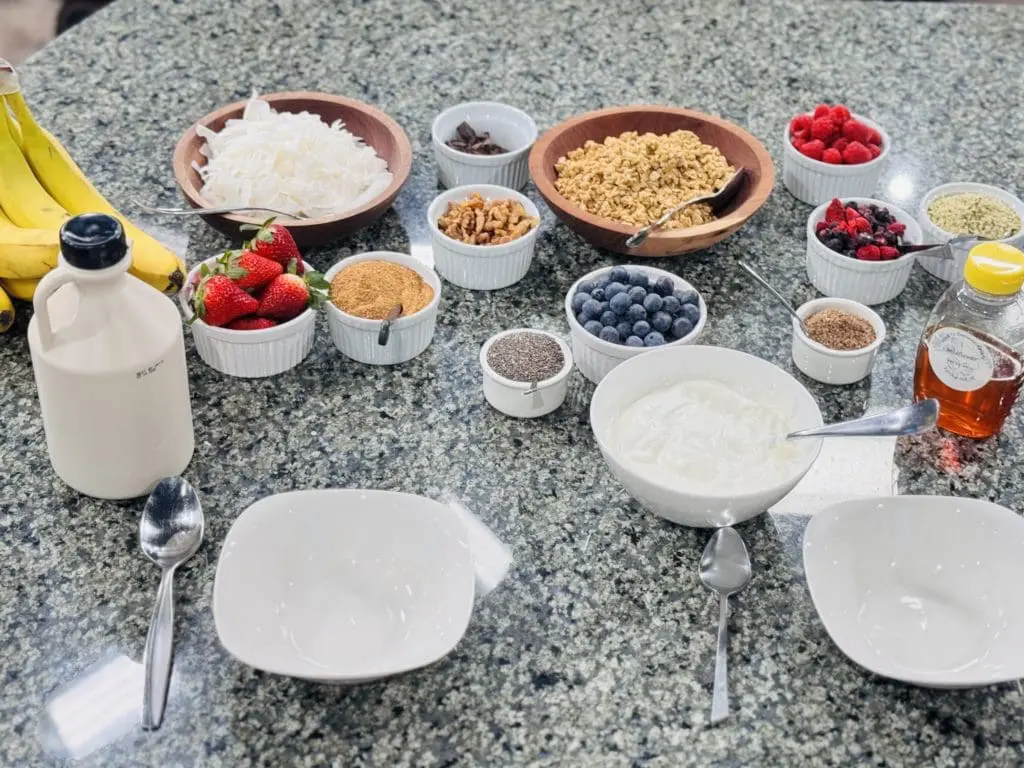 Smelling and tasting ingredients – Engage their senses with the sweet scent of berries, the crunch of coconut chips, or the texture of chia seeds.